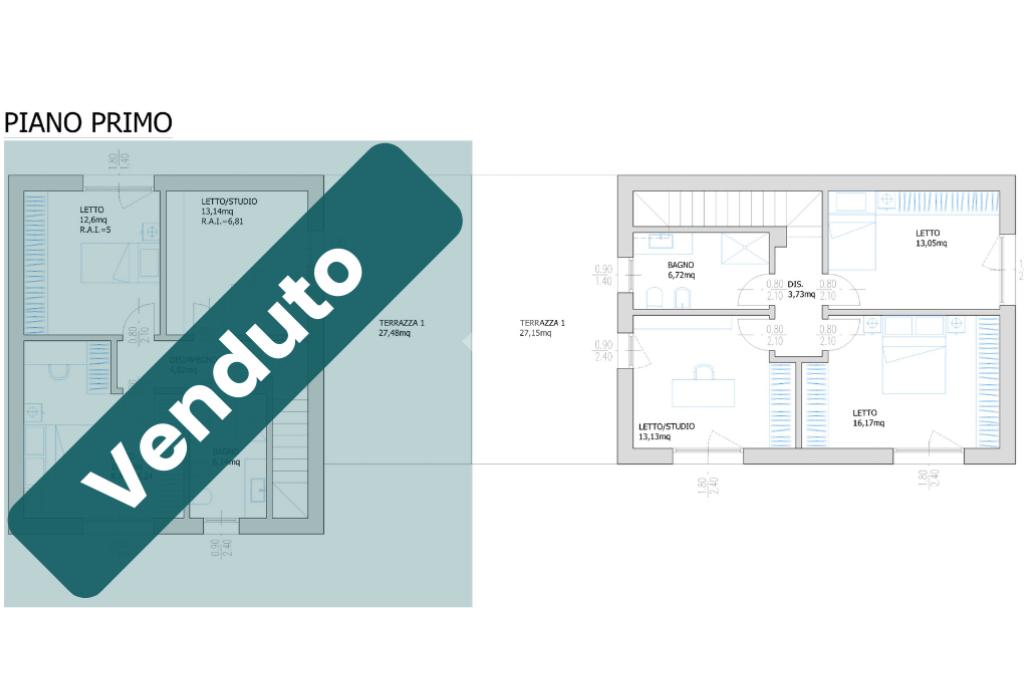 Al primo piano troviamo tre ampie camere da letto (una matrimoniale e due doppie) e un bagno finestrato. Questo piano è inoltre caratterizzato dallo spazioso terrazzo.