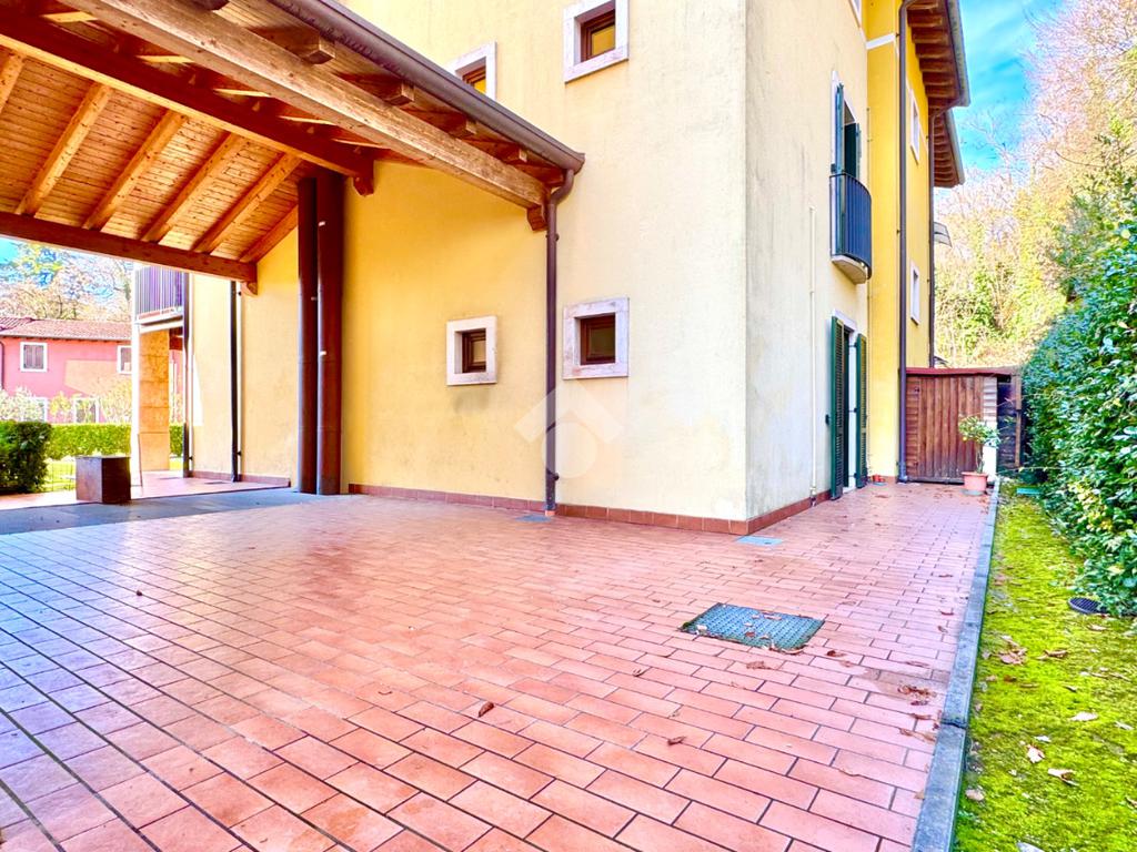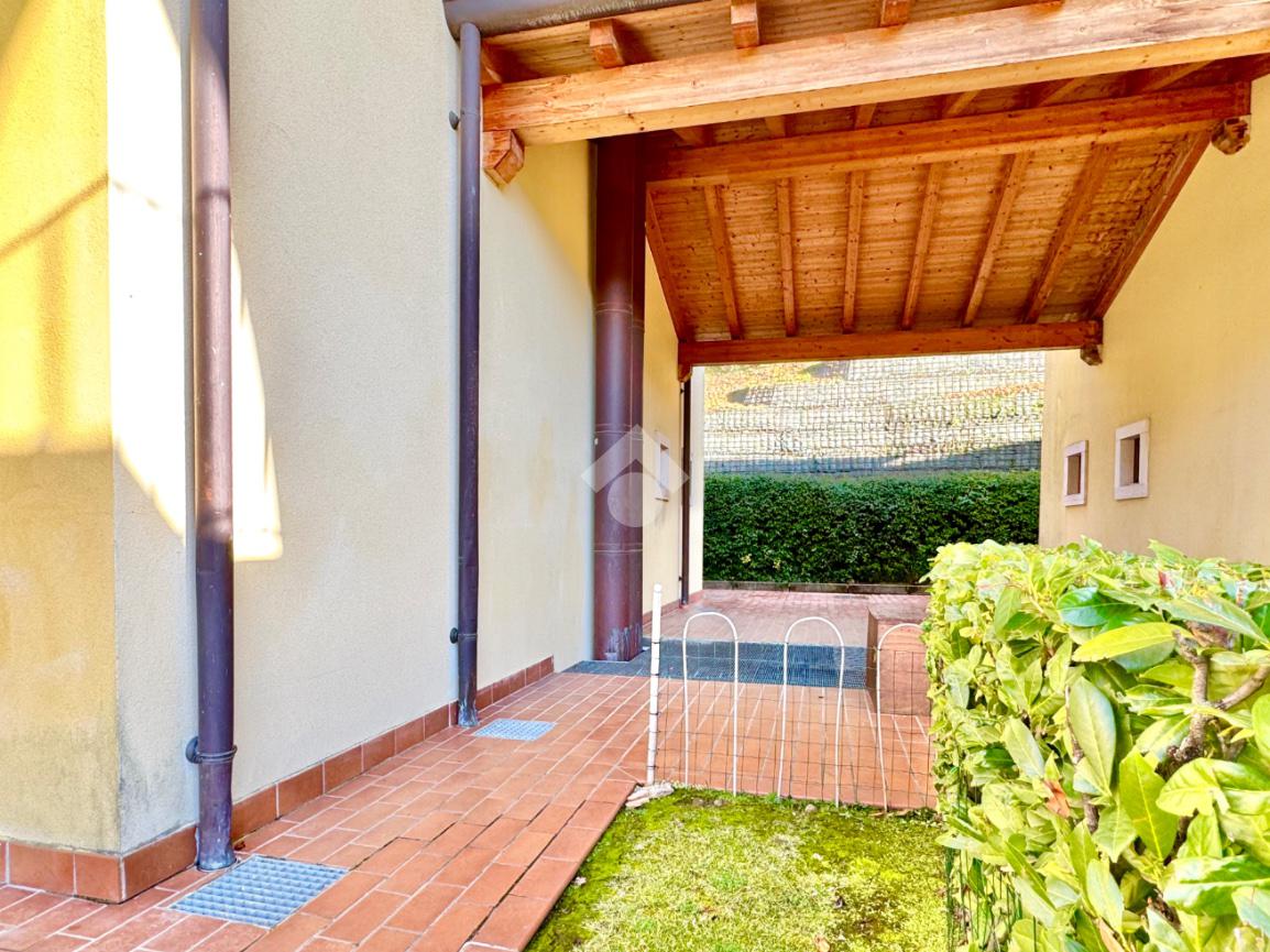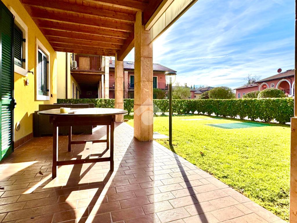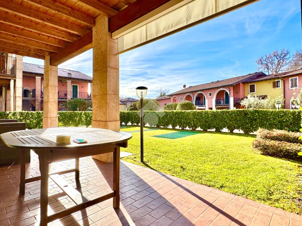 Trilocale angolare al piano terra con grande giardino e box doppio in residence con piscina