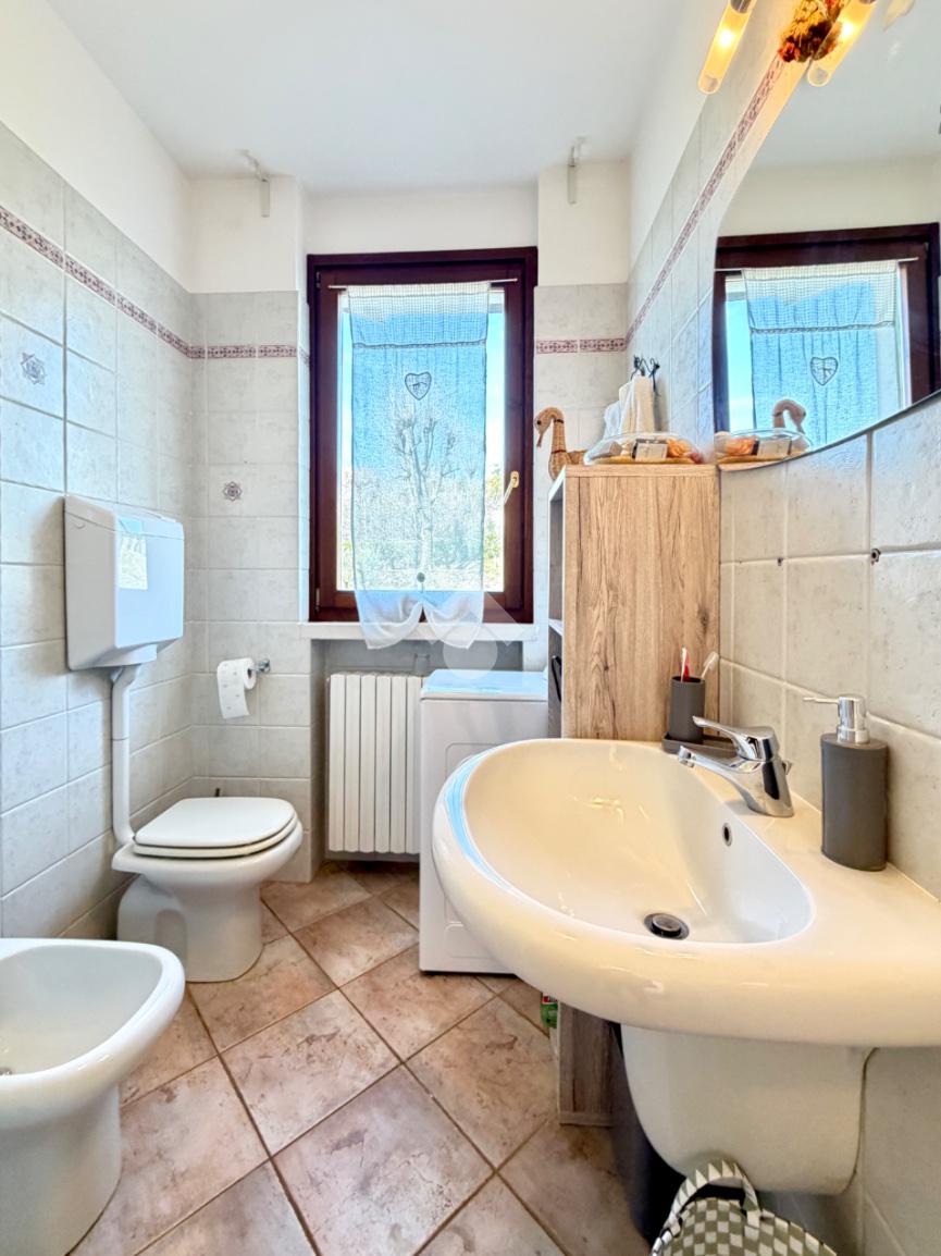 Internamente troviamo un luminoso soggiorno con angolo cottura, una spaziosa camera matrimoniale e bagno finestrato con doccia. A completare la proprietà abbiamo un garage singolo e cantina.