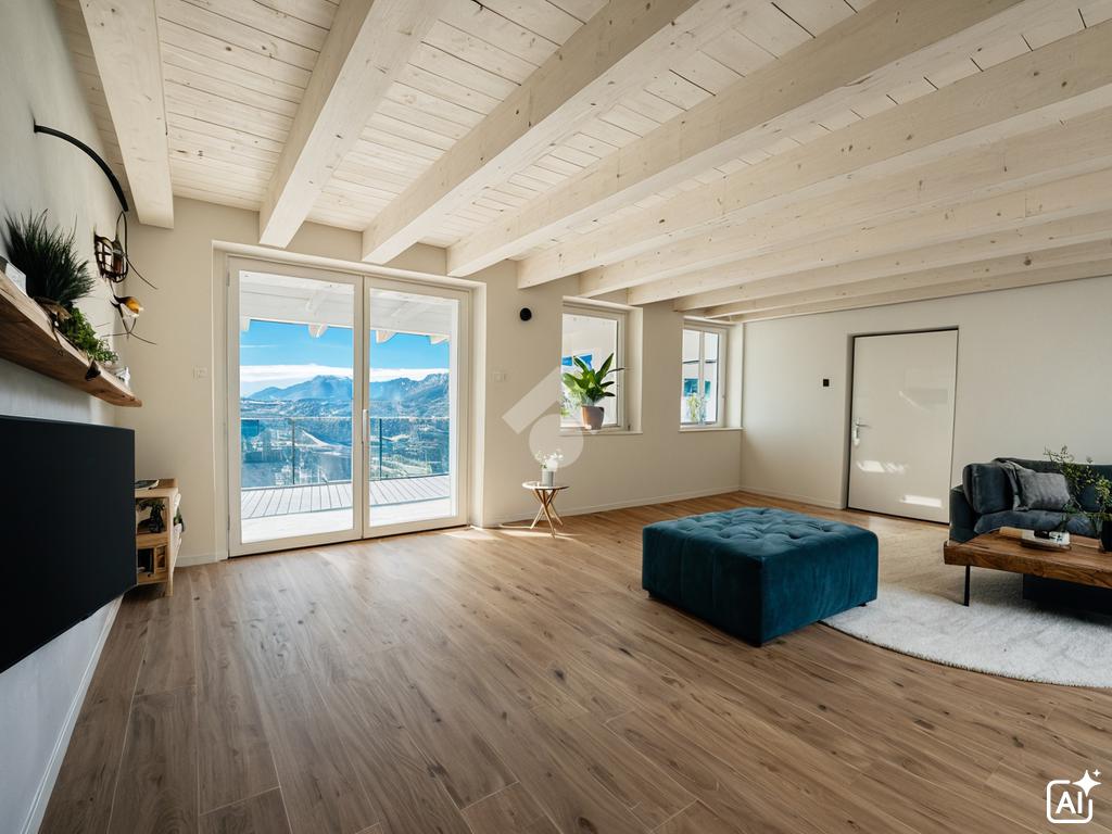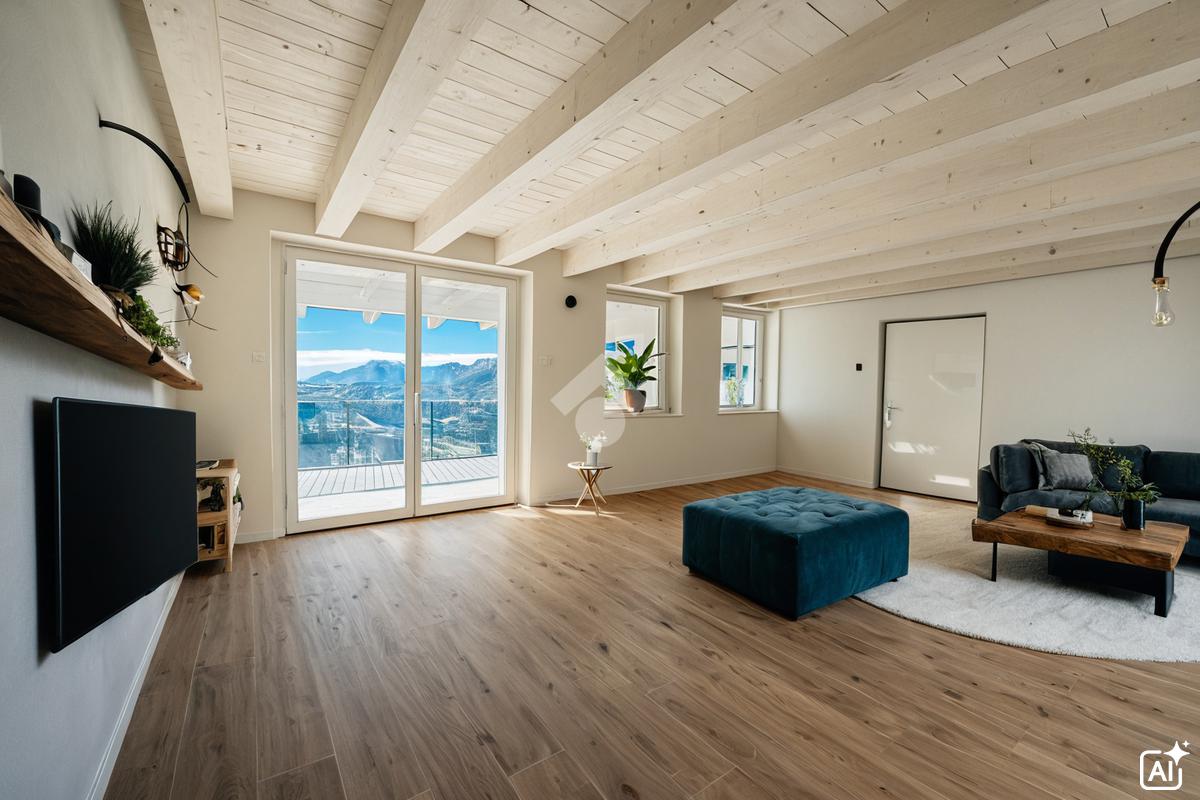 Al piano terra si apre una luminosa zona giorno open space, con ampie porte-finestra che si affacciano sull’ampio terrazzo, perfetto per pranzi e cene all’aperto, oltre a un bagno finestrato.