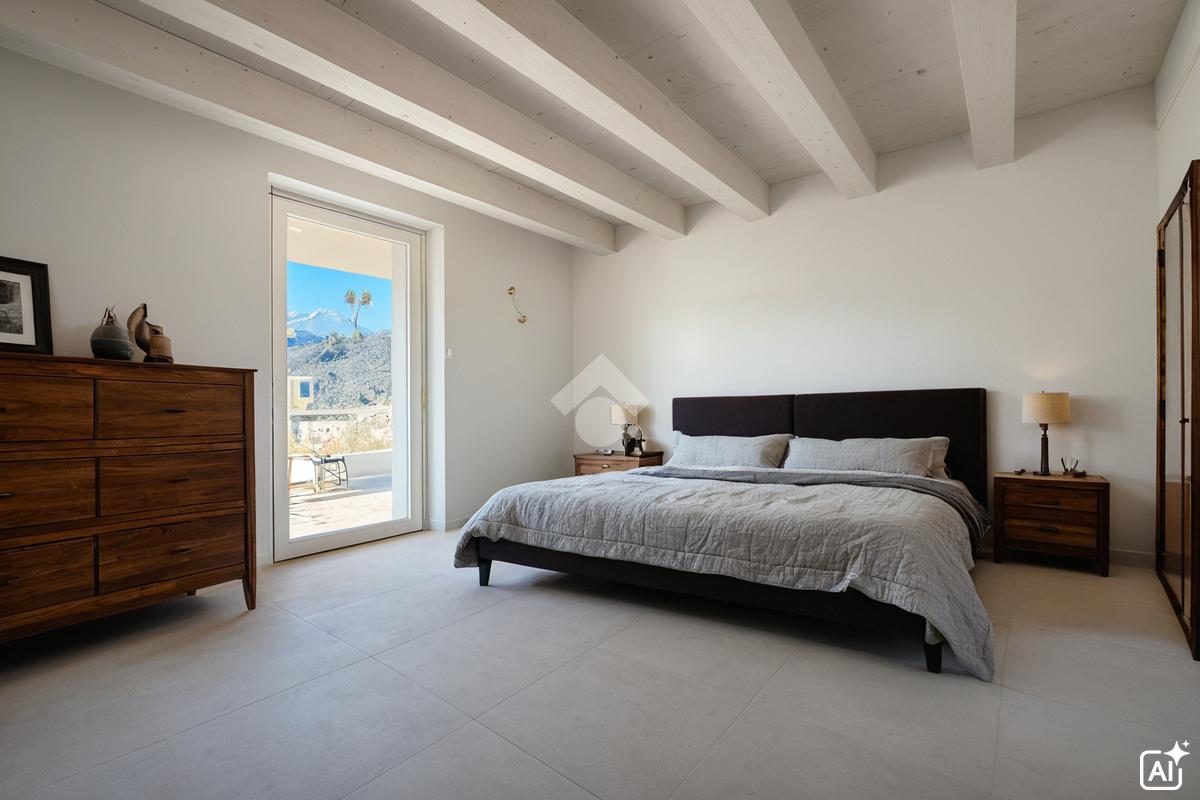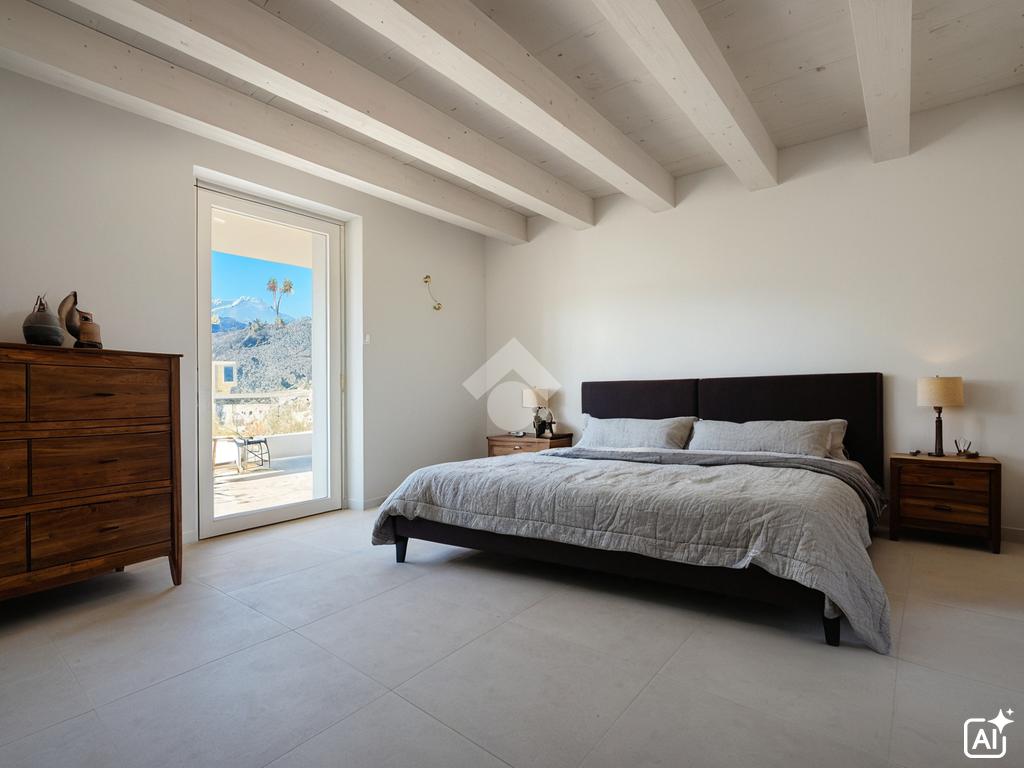 Il piano primo ospita una camera matrimoniale con accesso al terrazzo di circa 18 m², due camere da letto e un bagno con uscita sul medesimo terrazzo.