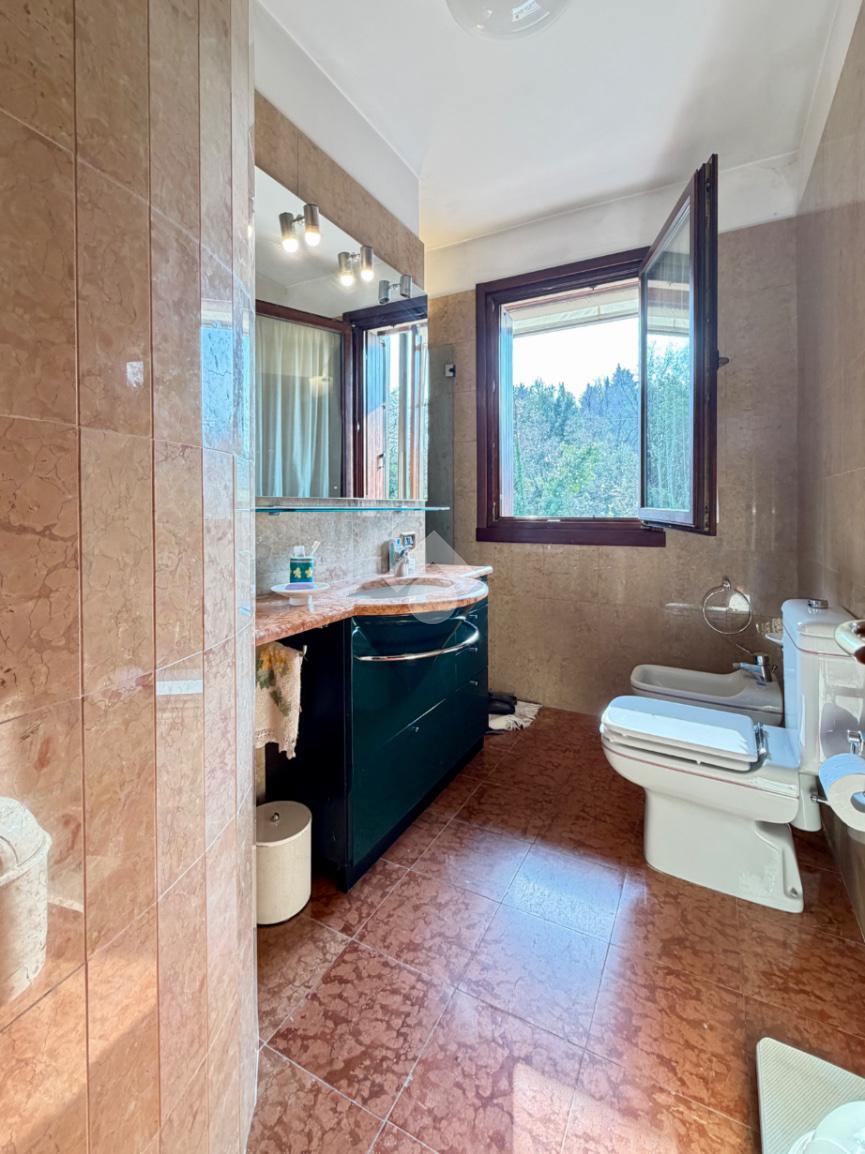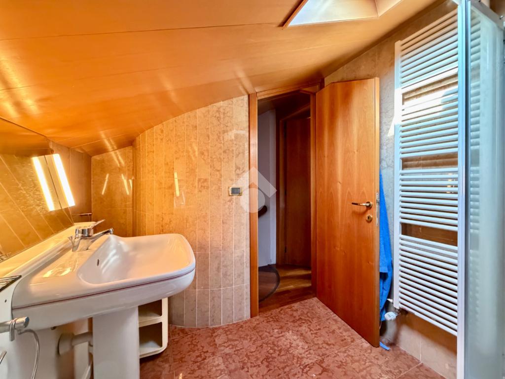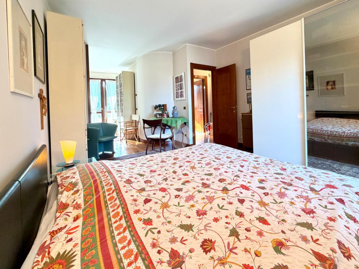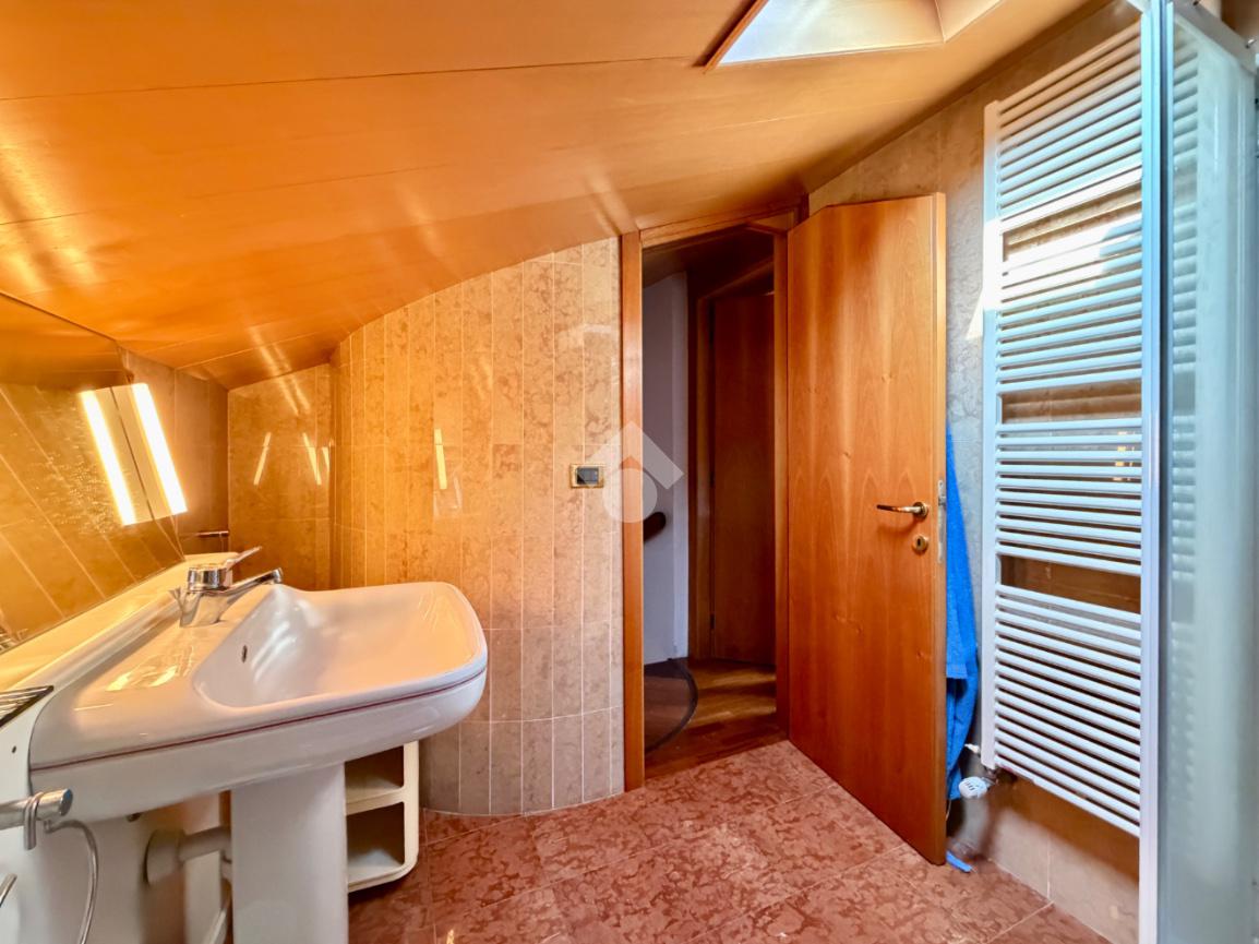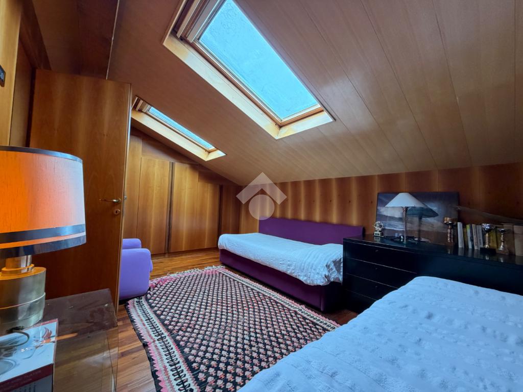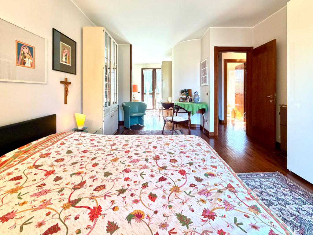 L’abitazione ci accoglie con un grande soggiorno open-space affacciato sull'ampio giardino che gode di una piacevole vista sul verde ed ospita un bellissimo camino in pietra che riscalda l’atmosfera nelle fredde giornate di mezza stagione. Al piano interrato troviamo la zona taverna, ad oggi usata come cucina, con un comodo bagno e ripostiglio. Una scala in marmo conduce al piano superiore dove si trova una spaziosa camera matrimoniale con una zona cabina armadio (un'eventuale cameretta), ed un ulteriore bagno finestrato in marmo. La mansarda è stata adibita a camera da letto, ospita due letti singoli e una pratica zona armadio a muro e due sottotetti.